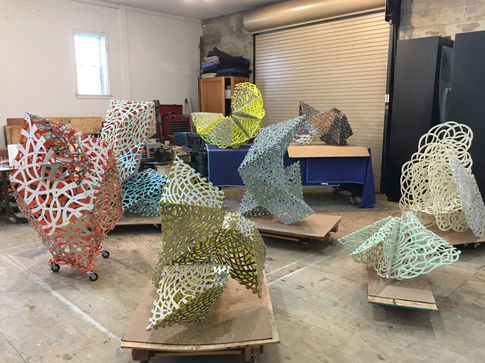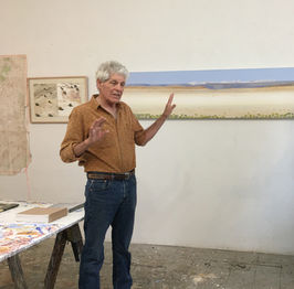 The day began about 9am in San Jose for the hour's drive to Benicia. Michael and Linda and their three dogs (including two large, exuberant, and outspoken puppies) greeted us at the door of the glass-brick-fronted building—originally a brewery, then a restaurant and bar—which they acquired in 2000, transforming into their home and studios.