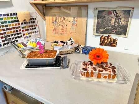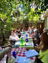 Our June Turnover Board Meeting was held at the home of our President, Tony Misch. Walking into his backyard we were treated with lush vegetation, sculpture and color. After our short board meeting we feasted on a bountiful pot luck. Not only are our docents hard working and creative they are generous and very good cooks!
