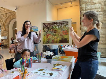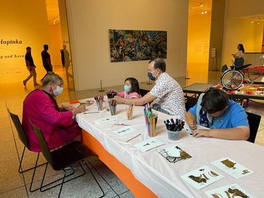 San Jose Museum of Art's June 3 First Friday featured lots of art and creativity. Our docents, Sherry Tsai, Suman Ganapathy, Lisa Dearborn, Lotte Van de Walle and Tony Misch were on hand to help with the activities. The smiles on the faces of the people who participated says it all!!!!