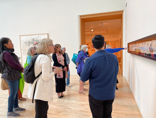 Our March General Meeting celebrated our newest docent graduates. They received their name tags and now officially can go out into the classrooms to give their first presentations. This was Tony's last meeting as president. He will pass on the gavel to Louise Persson in May. Thank you Tony for all you have done as president these last two years. Christy Cali, our Parliamentarian is still searching for a few more volunteers for our Board. We will vote on the new Board at our final meeting in May. Jody Foster announced the topic for our study group---Art Goes to the Movies! It will be held at Suman Ganapathy's home in Morgan Hill. After the business meeting we joined Juan Omar Rodriquez, curator for the museum, in the upstairs gallery to hear his talk on the show Encode, Restore and Retrieve.