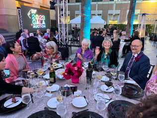 The museum's Gala was held in the courtyard in the circle of palms. This year the artist being honored was Enrique Chagoya, an internationally acclaimed artist who was born in Mexico City but has been working in the Bay Area since 1979. Our docents enjoyed dinner under the stars. The after party featured music by Chuy Gomez