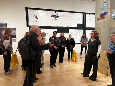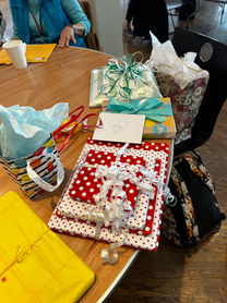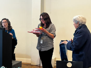 Our November general meeting was held in San Jose Museum of art's Wendel Center. Our wonderful Hospitality co-chair, Debbie Earl guided us in a fun ice breaker. We broke into small groups and were asked to share the keys to our cars. We give a brief description of our cars, why we bought them and did we enjoy driving them. It was fun learning a little more about the lives of our fellow docents. Kelsey introduced Shelby to our group. Shelby will be taking over for Kelsey while she is on maternity leave. Cathy Fraser purchesd some great books from Hicklebee's Children's bookstore on behalf of LLAA and presented them to Kelsey. Every child needs exciting books in their library. Cathy also got up early to go to Peter's Bakery to get their delicious pastries for all of us to enjoy.