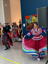 We enjoyed the lively music and dancers in the lobby of the museum. Along with crafts, music and dancing; the museum set up an Ofrenda. This is a traditional alter used for the Mexican celebration for Dia de los Muertos to honor and welcome deceased loved ones. Examples of items adorning these altars can be photos of the deceased, marigolds, candles, their favorite foods along with other personal mementos and traditional items like pan de muerto (bread of the dead) and decorative paper banners.